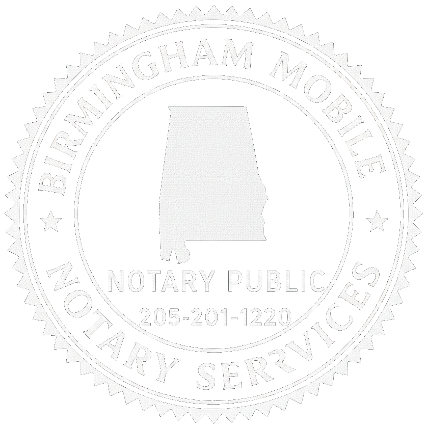 Birmingham Mobile Notary Services offers general notarization services such as Power of Attorney, I-9 Verification, and Affidavits. We serve Birmingham, AL and surrounding areas including Jefferson, Shelby, and Walker County. We are licensed, insured, and bonded for your protection and peace of mind.